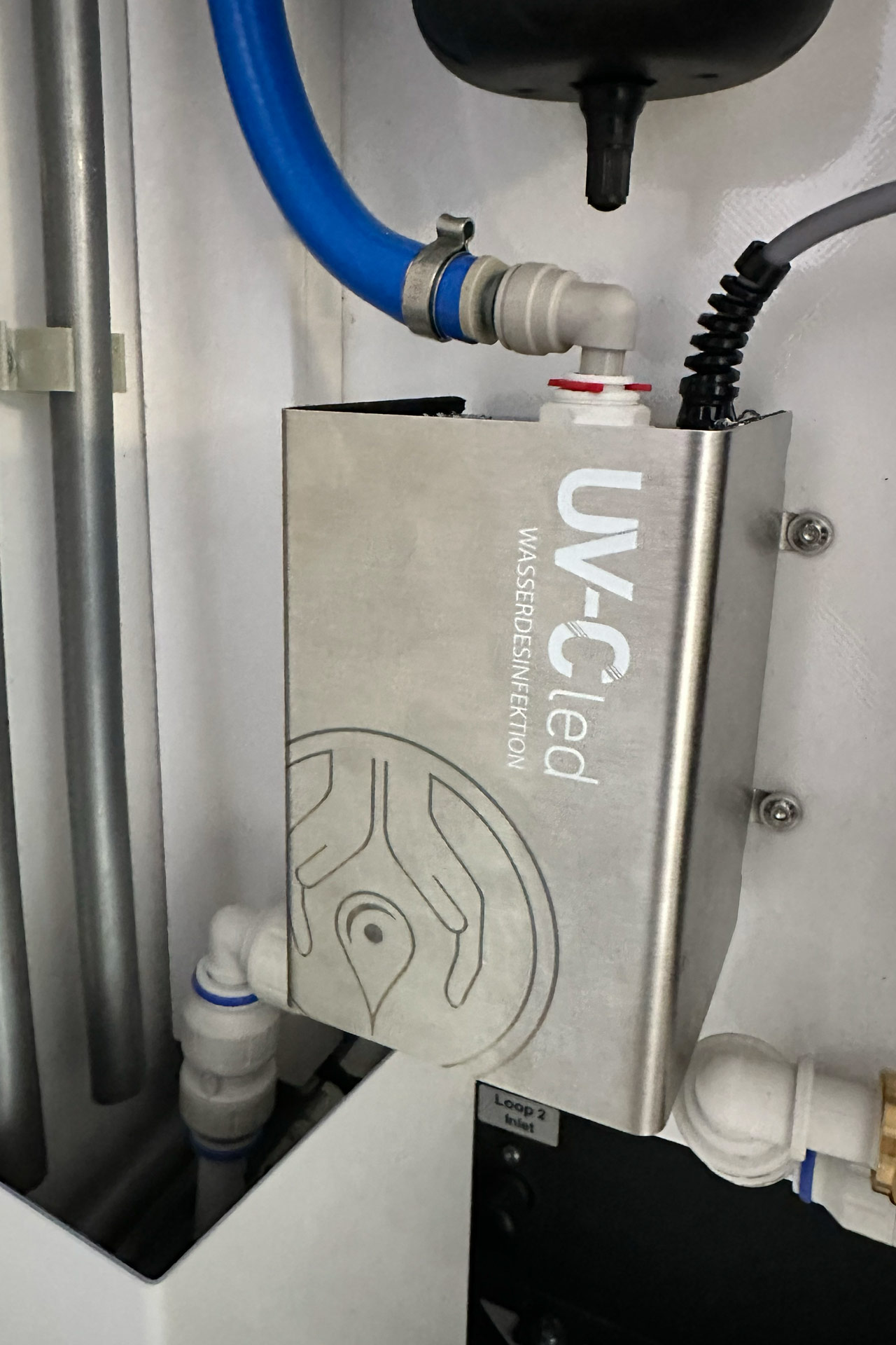 Die GFK-Kabine mit 57 Millimeter Wandstärke und dreifach verklebten Profilen steht für einmalige Stabilität und perfekte Isolation. Die GFK-Sandwichplatten werden vollständig selbst produziert.